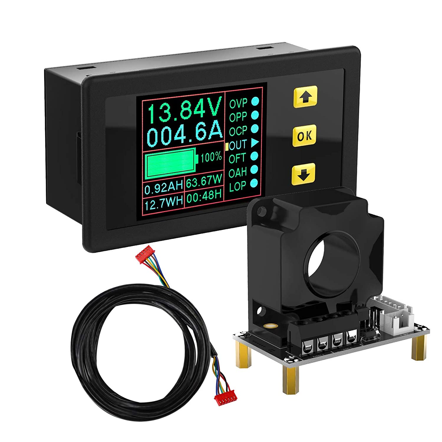 Charge-Discharge Multi MeterDC 0-120V 50A Power Meter with Color LCD Display Battery Amp Volt Power Capacity Temperature Monitor with Hall Sensor