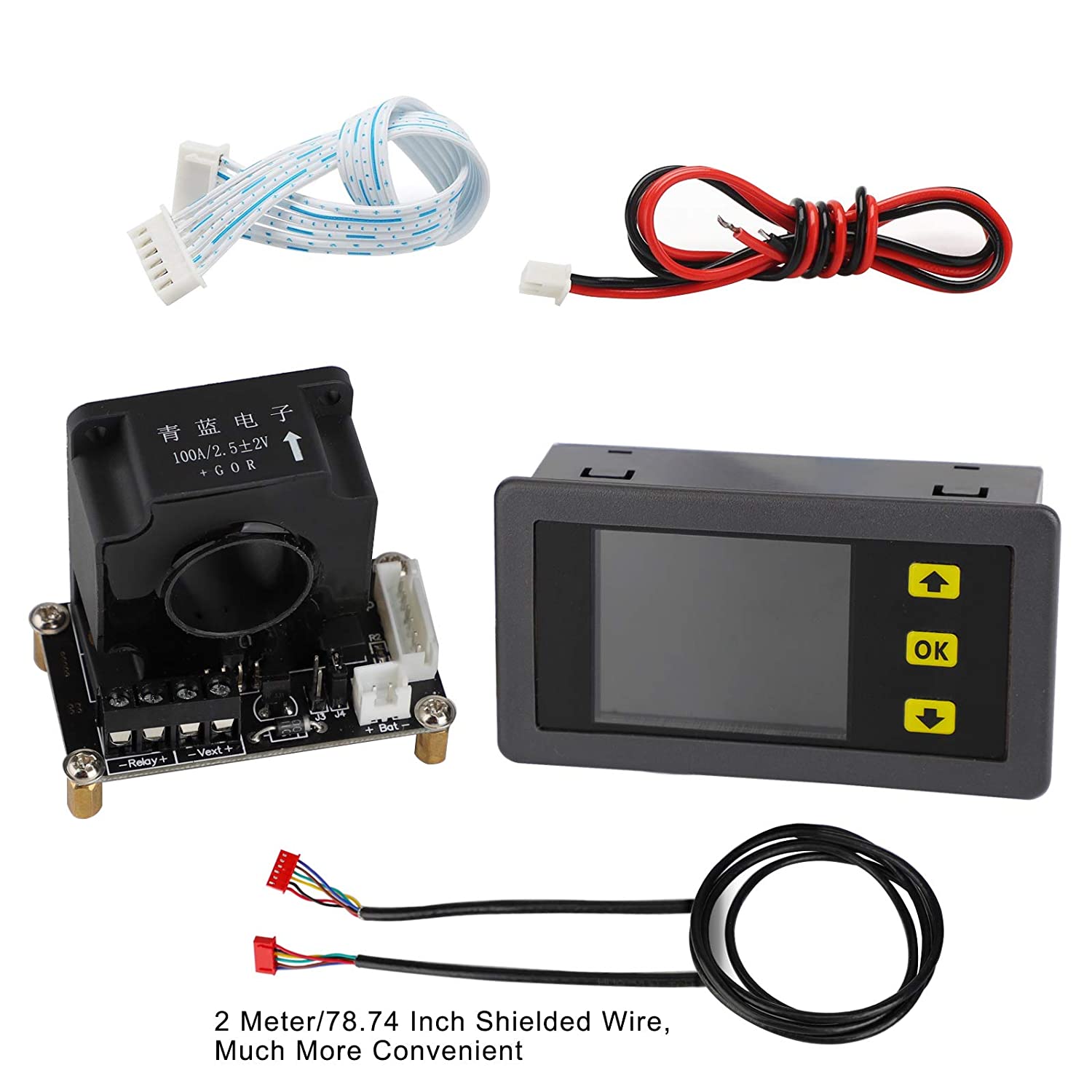 Charge-Discharge Meter 0-90V 100A DC Voltage, Amperage, Power, Battery Capacity Amp-Hour Watt-Hour Time Multimeter, LCD Digital Volt Current AH WH Watt Tester with Hall Sensor 2m Shielding Wire