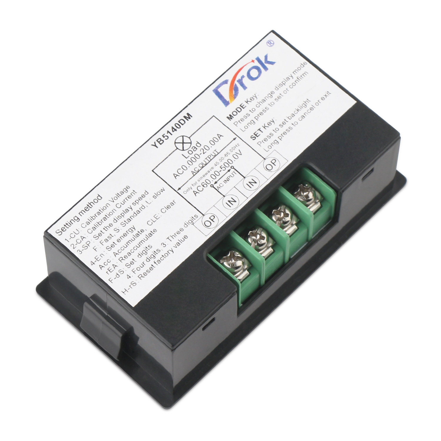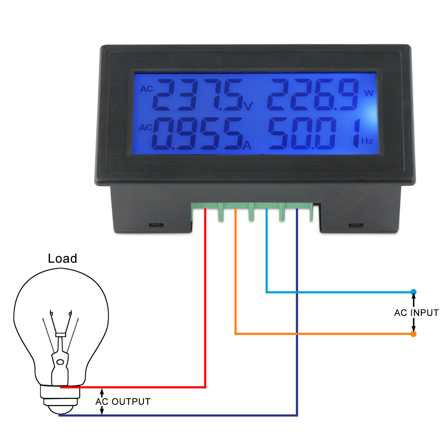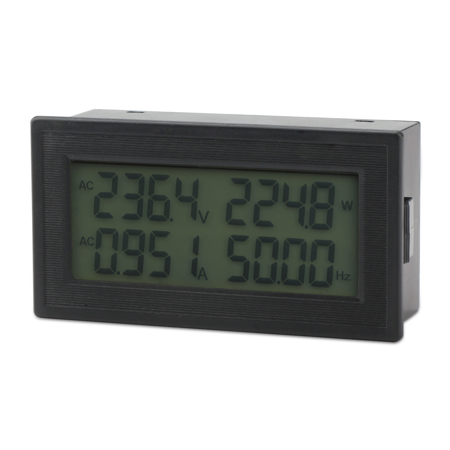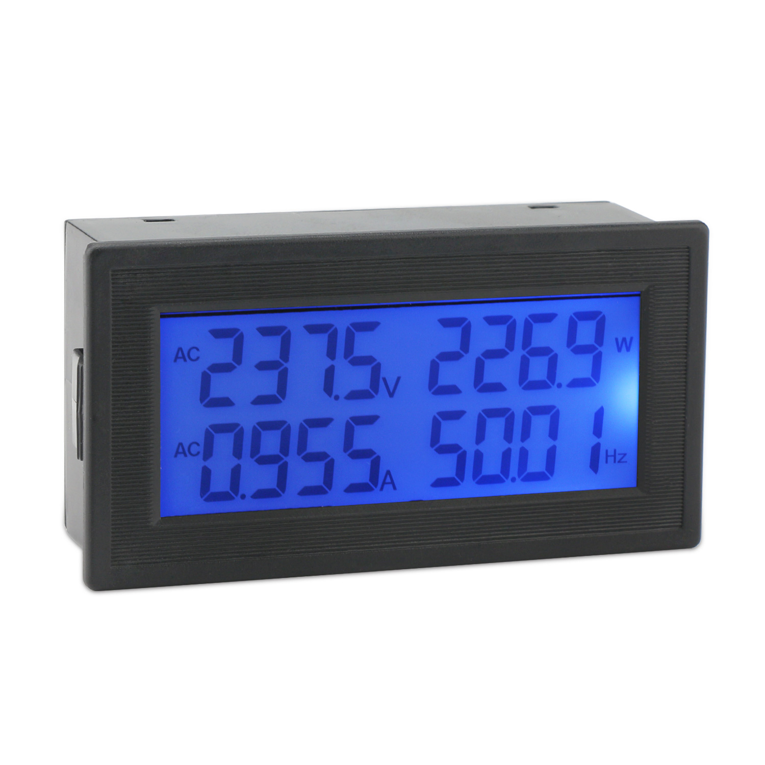 - 1. 6 in 1 meter, capable to measure AC voltage, AC current, active power, frequency, power factor, and electric energy.