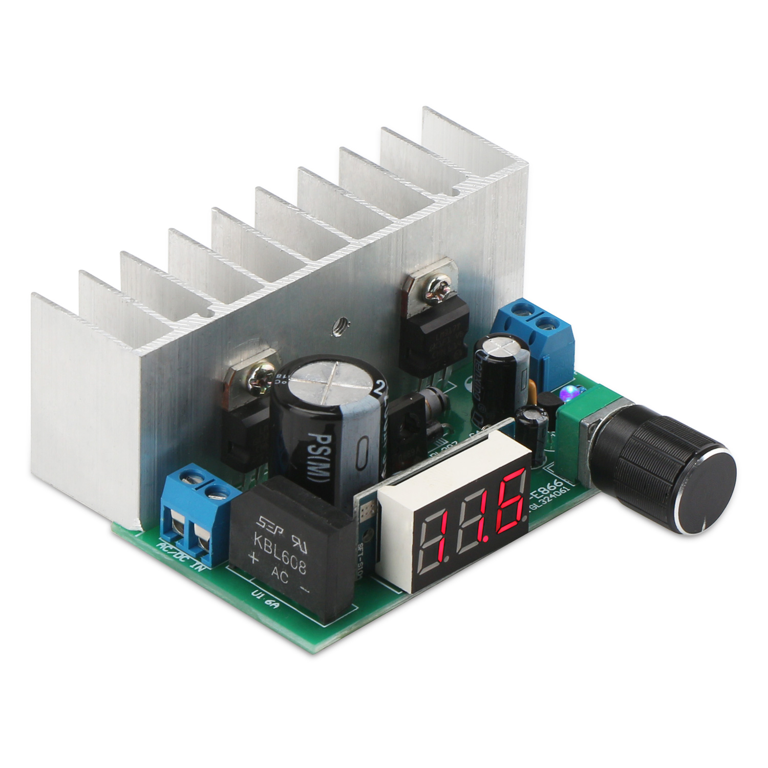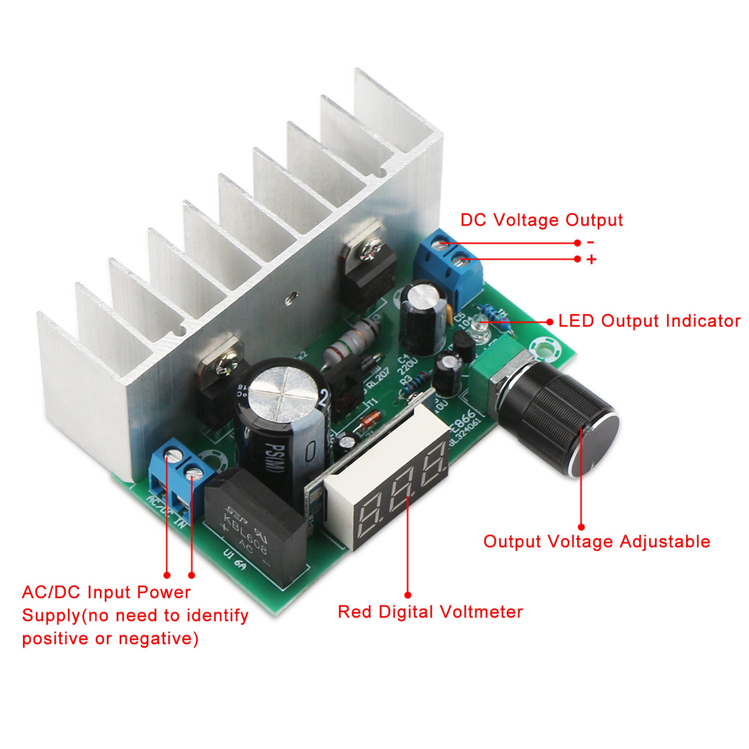 It is a LM317 Adjustable Power Supply Module, Input Voltage: DC 3V~ 35V or AC0- 28V, Output voltage: DC 1.25~32V can adjust continuously, Output current: 5mA~1.5A, Suitable for Suitable for DIY an adjustable voltage regulated power supply, Industrial equipment Voltage convert, Power Supply Transformers etc.