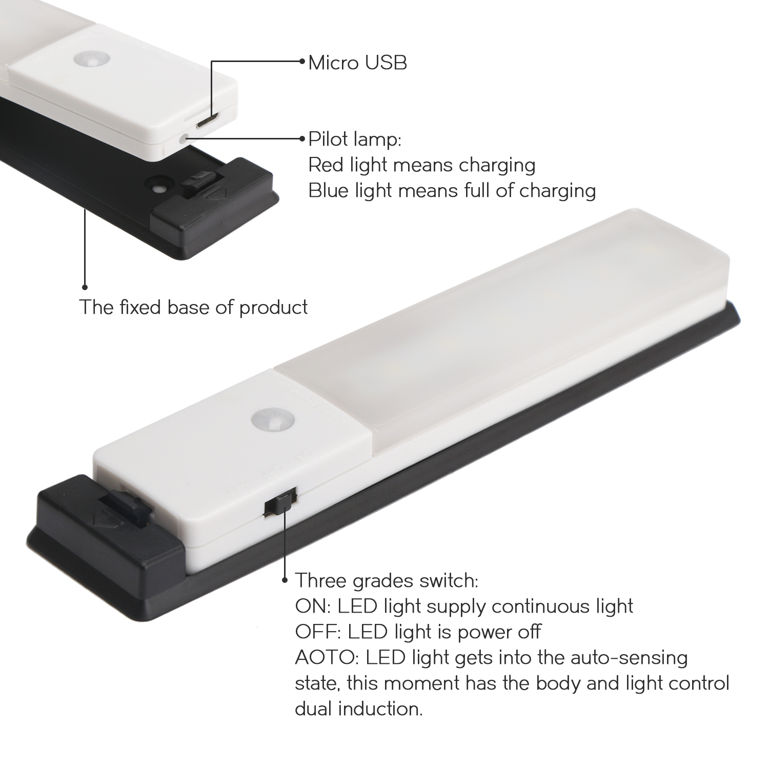 - Has ON/OFF/AUTO three grades switch, the AUTO grade is a induction state, this moment has the body and light control dual induction.