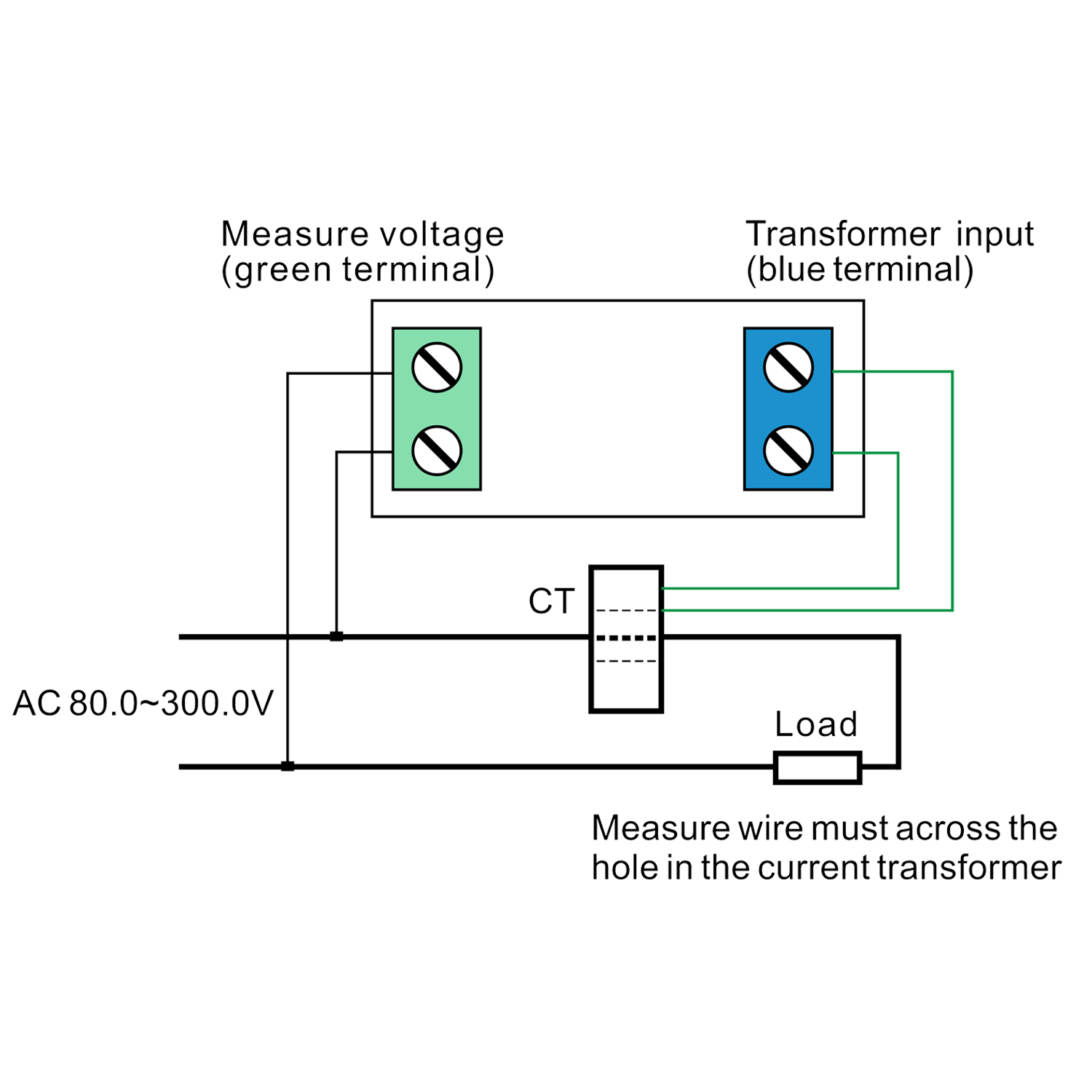 - Note: Please let the wire of the measuring circuit pass through the hole of transformer.