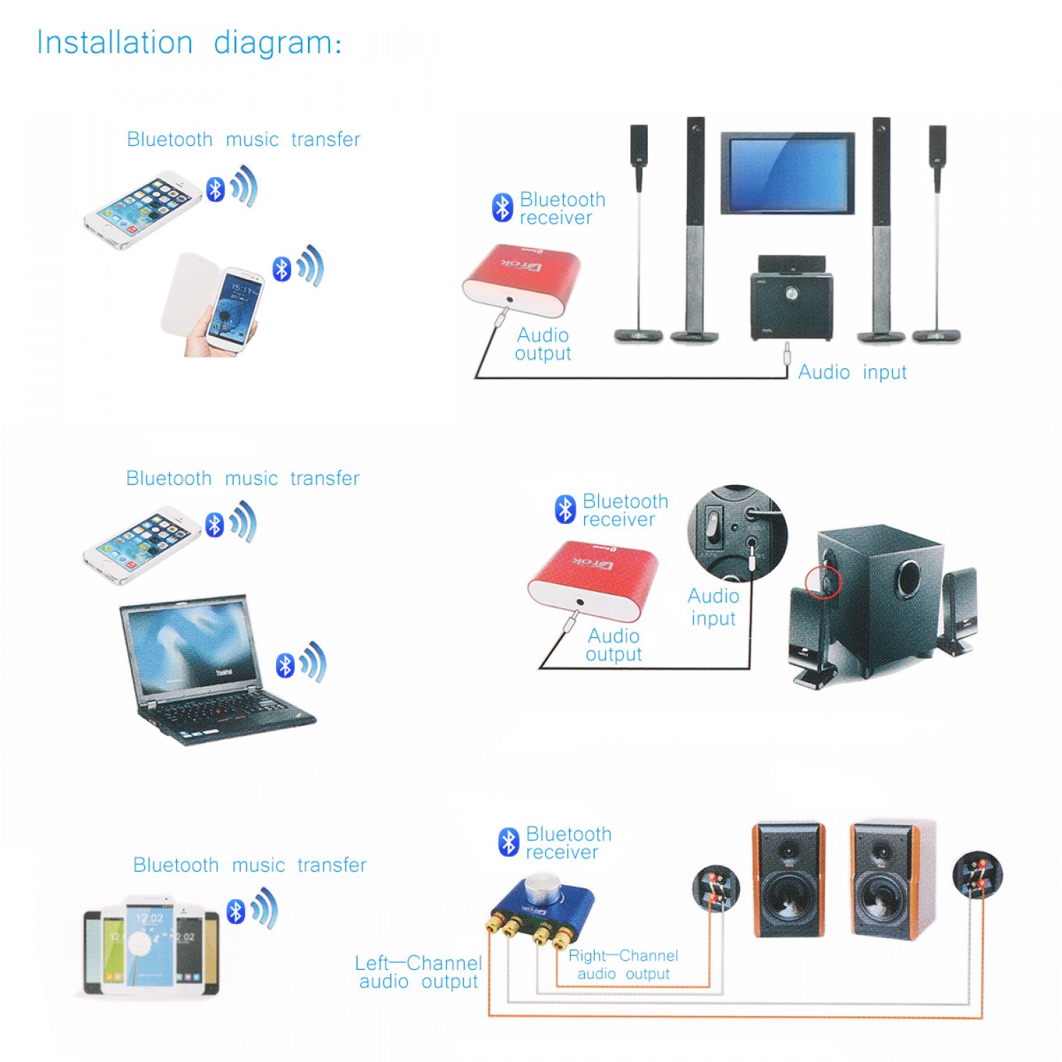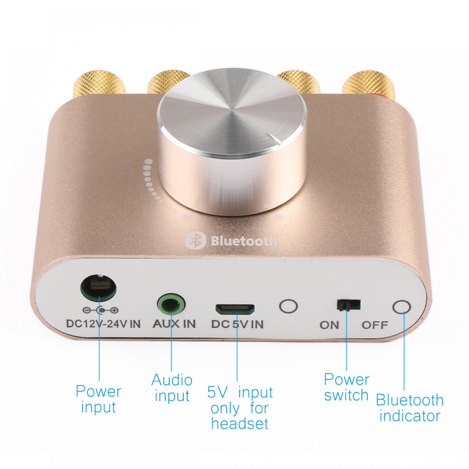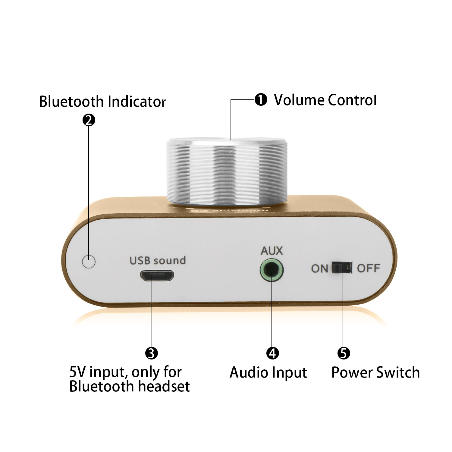 - Connect the speakers, please use 12V power supply; Connect the headset, please use 5V power supply; Recommend speaker power is 10W to 120W.