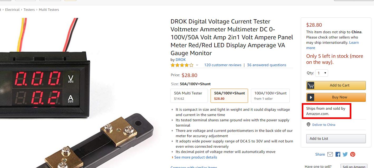 I purchased the following meter through amazon-DROK® 2 Wires DC 0-50A Digital Current Meter Blue LED Amp Meter+Amperage Shunt Resistance