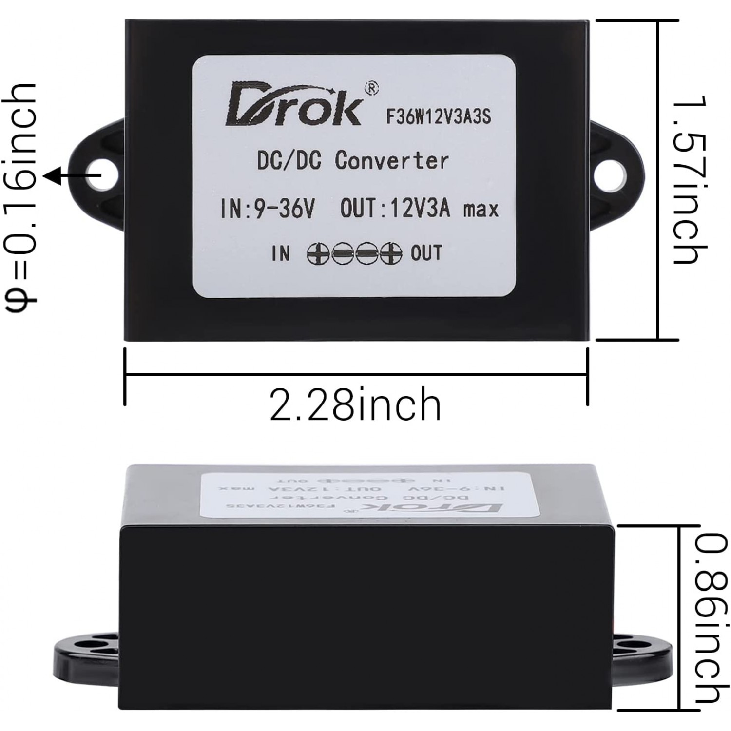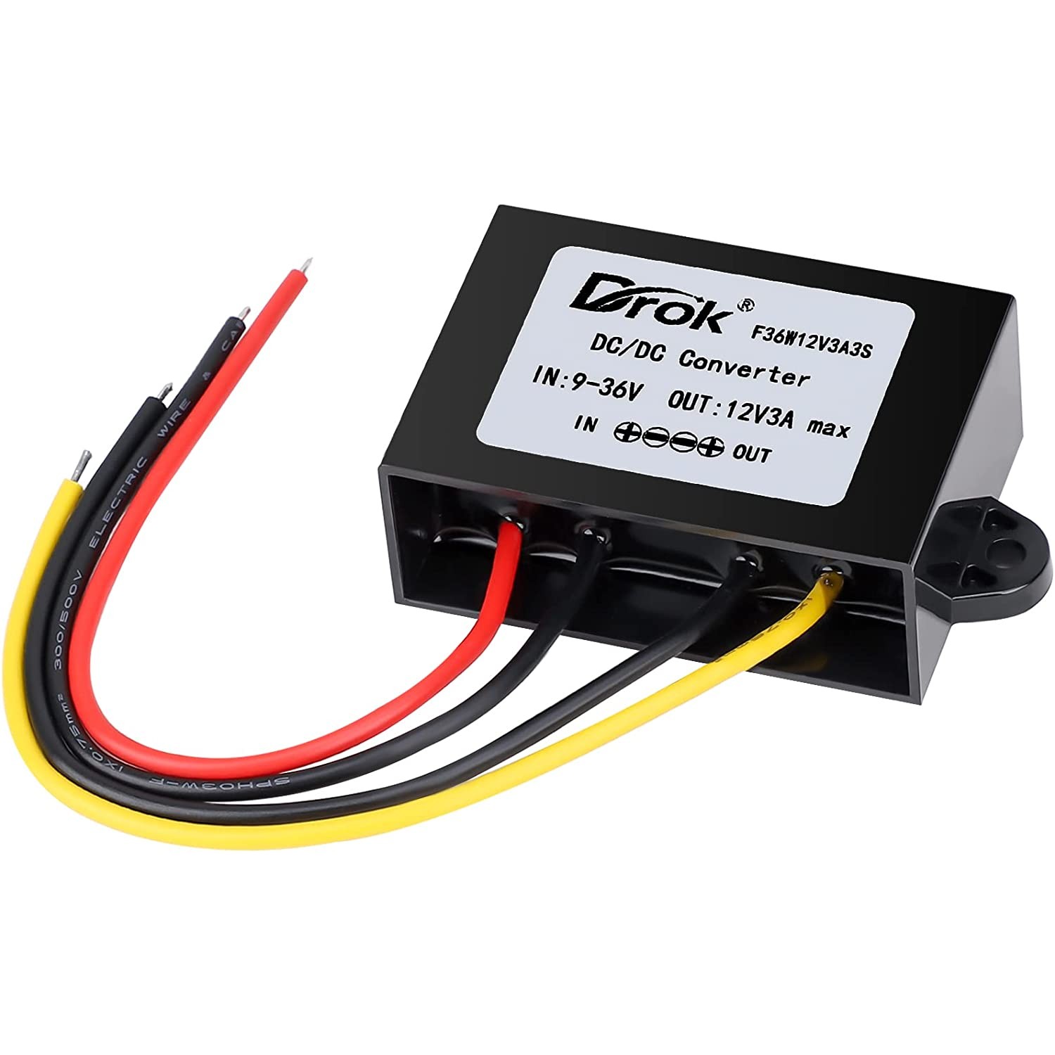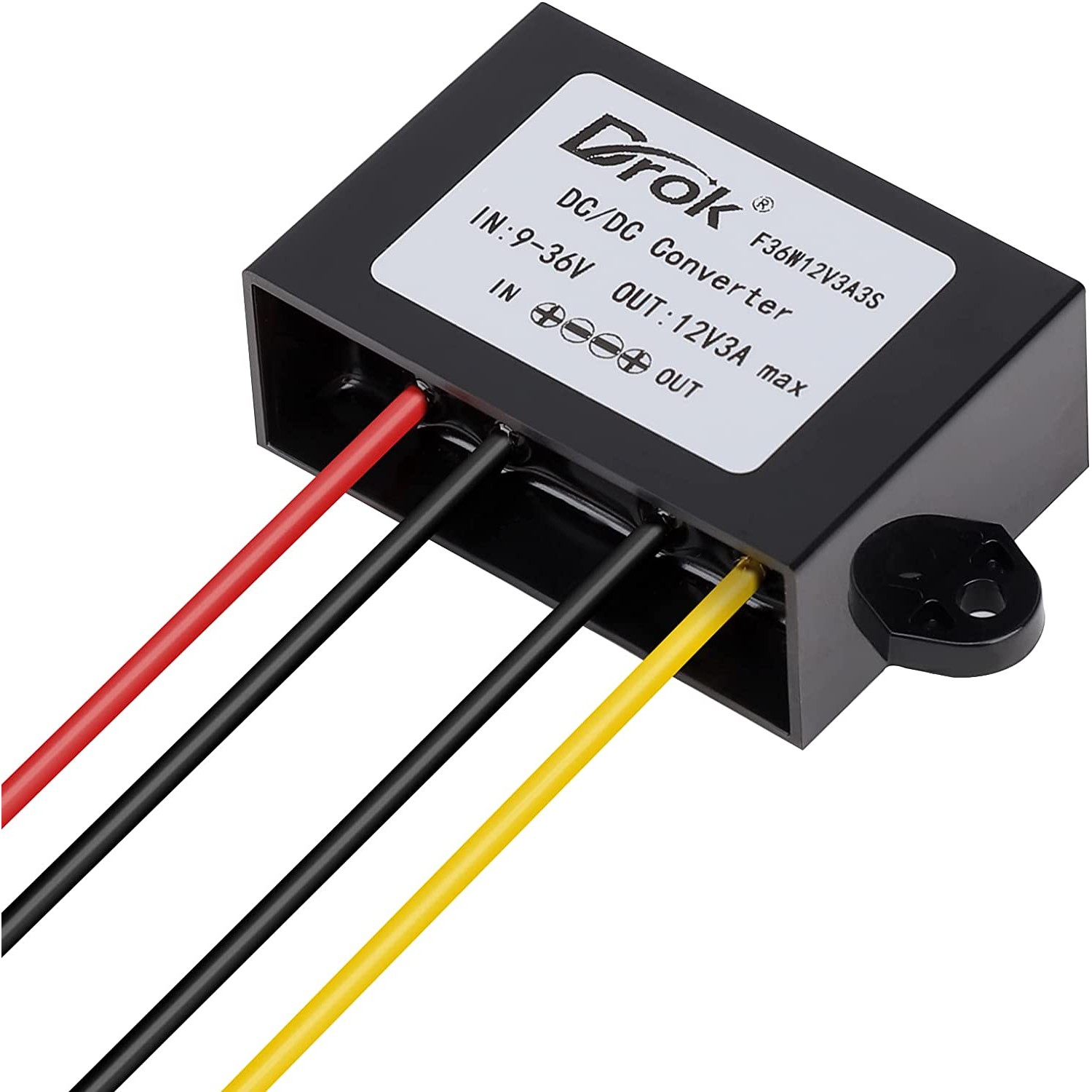 Tags: DROK Boost Buck Converter 9V-36V to 12V 3A 36W Plastic Shell Waterproof Auto Step Up Down Voltage Regulator 12V Volt Transformer for Car Audio Solar Power System LCD Television LED Display Screen : Electronics