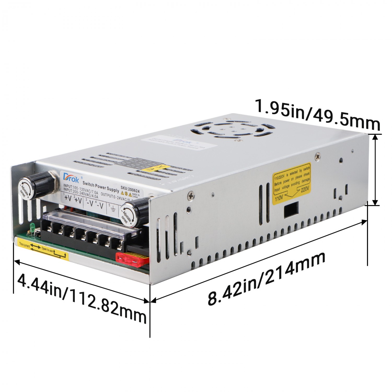【Easy Operation】 This supply is no need to install, after connecting wire, it can be used to adjust output, which is convenient. The potentiometer is inset into the supply. Only to rotate the potentiometer can adjust output parameter.