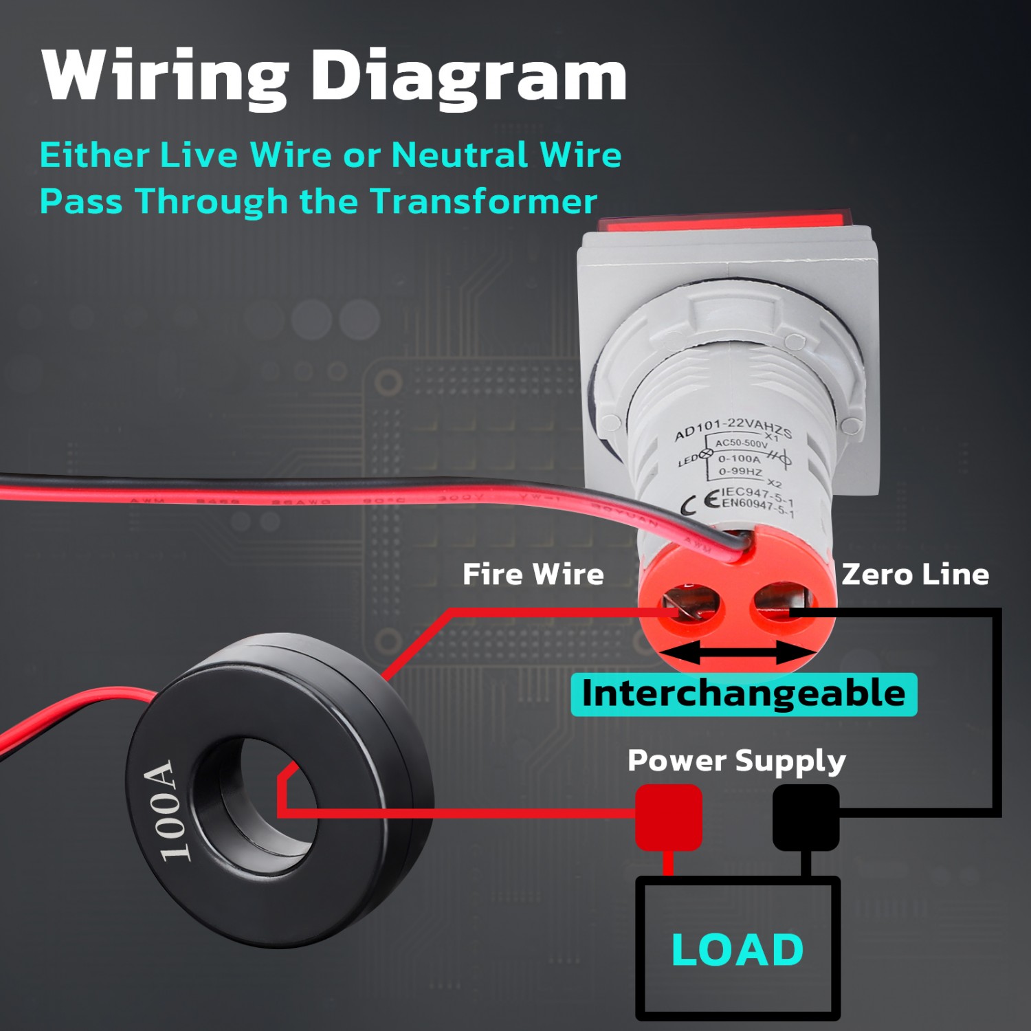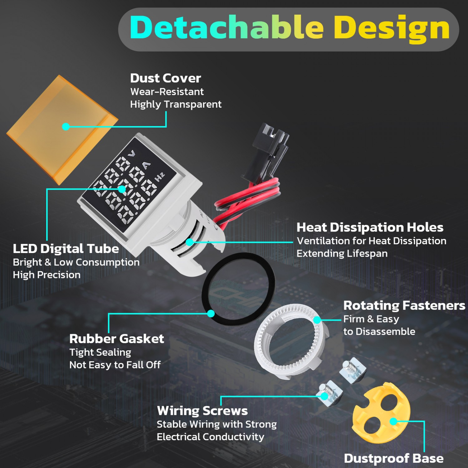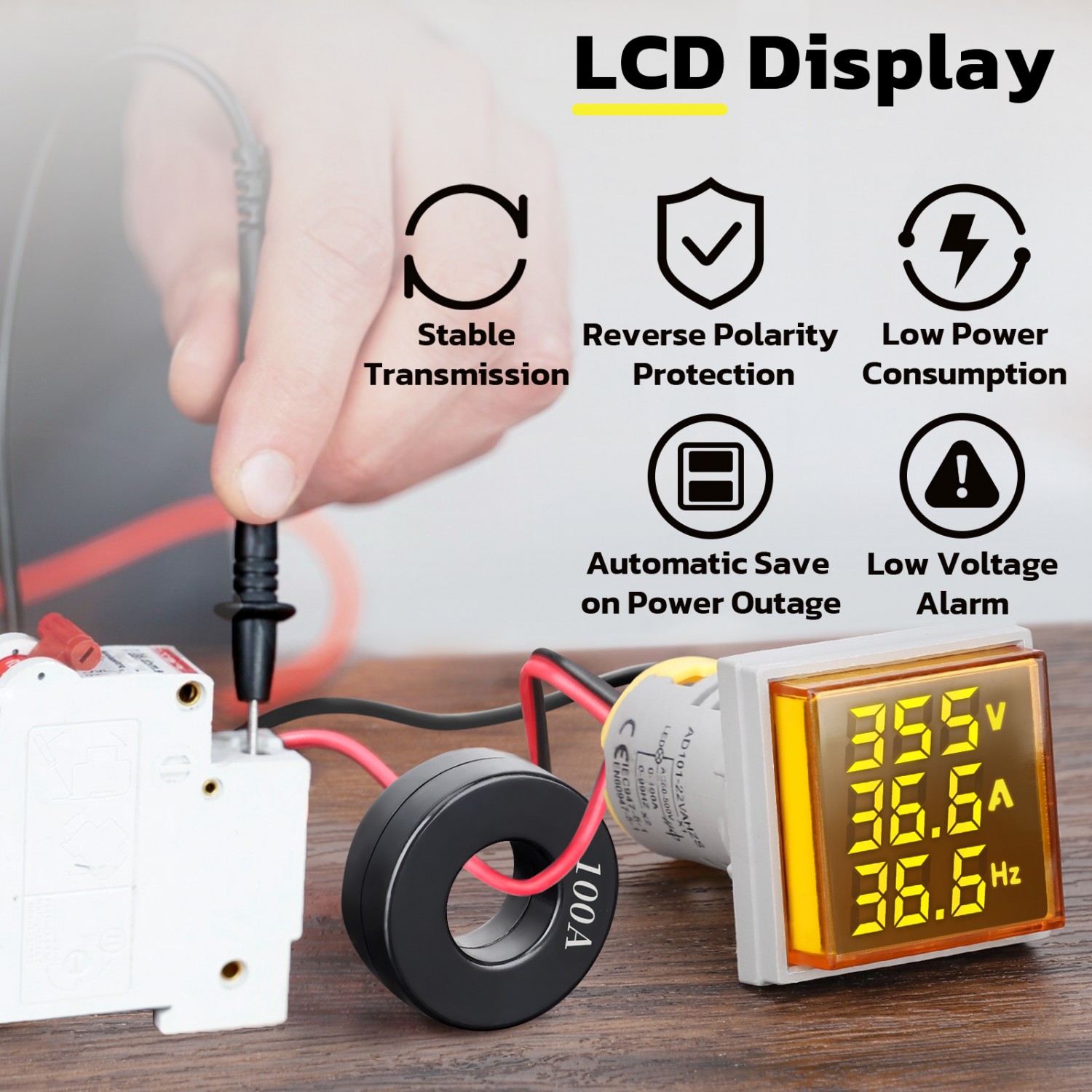 - 3 × AC Current and Voltage Display Meters (Red, Yellow & Green)