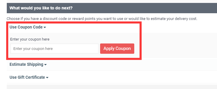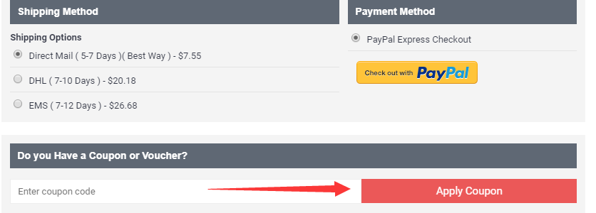 Click “Apply Coupon” and the discount rate or money rebate will be deducted from the total.
