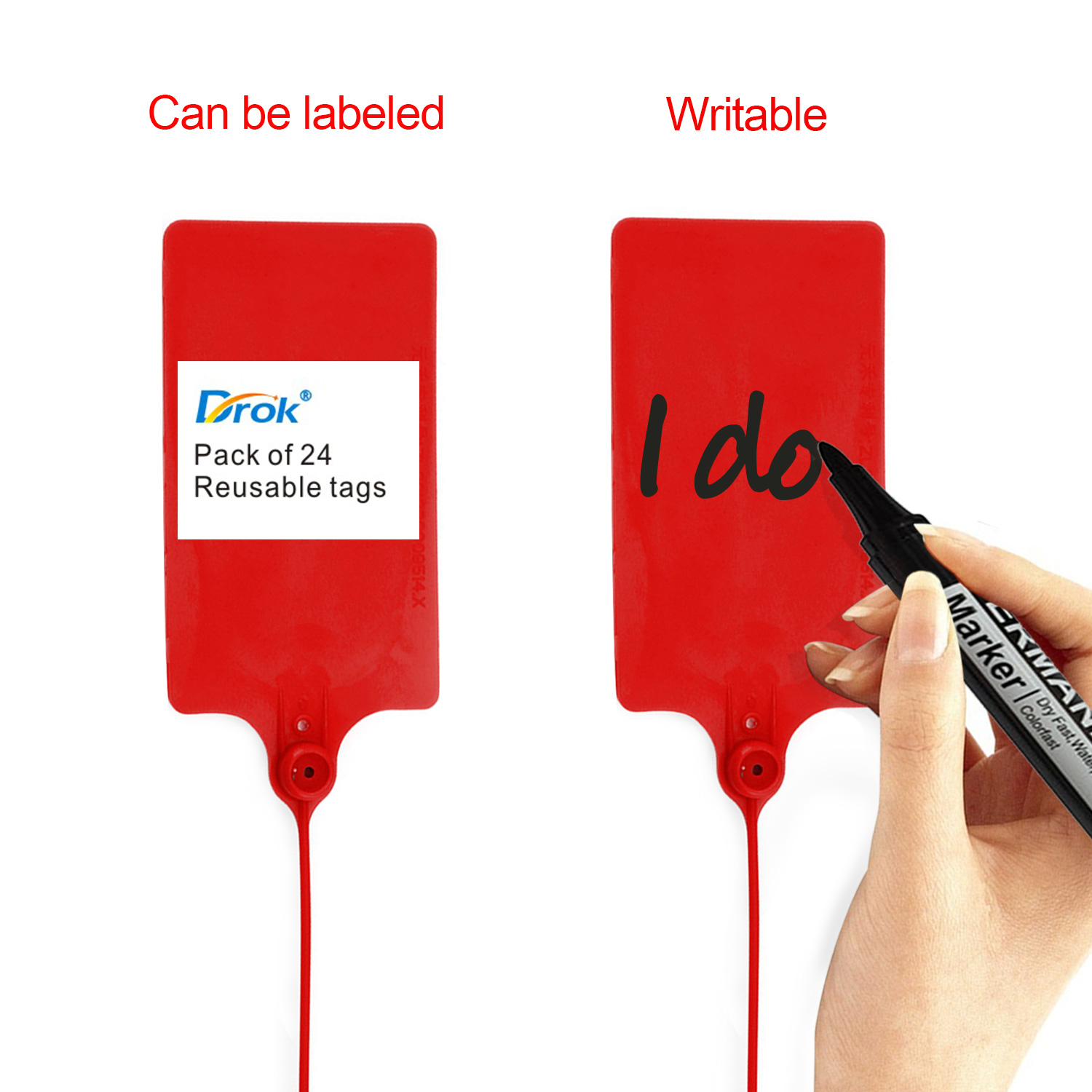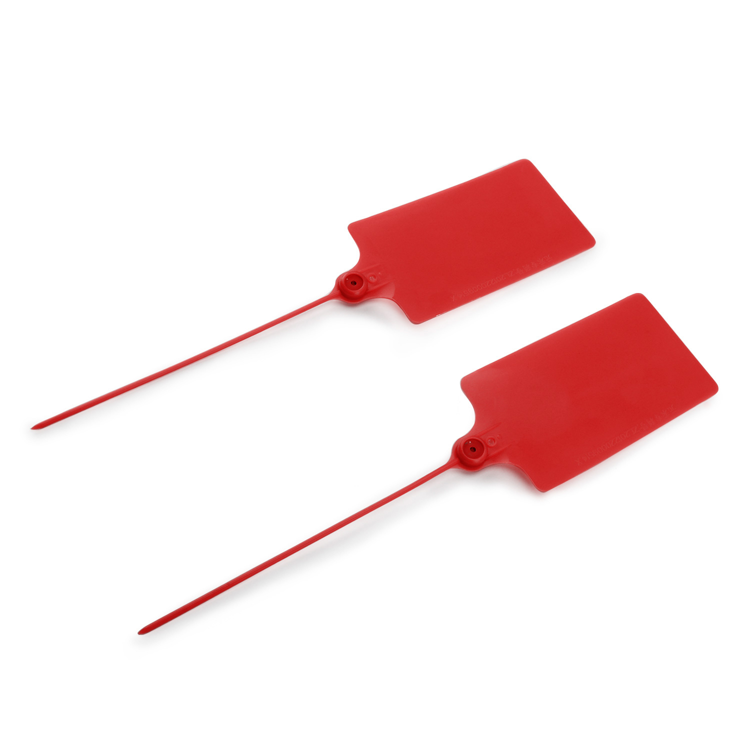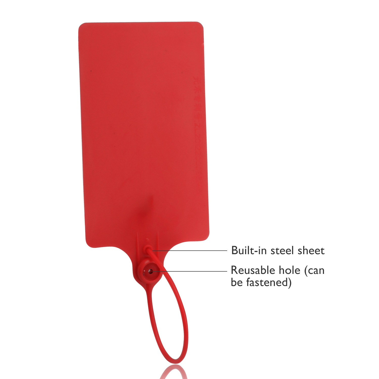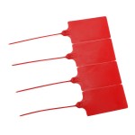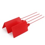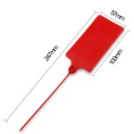It is Plastic Labels Tags, Color: Red, Material: High-class Nylon 66, Dimension: 25cm (overall length), Tag Size: 57 * 100mm, Applications: Can be used for logistic tag, warehouse sign, product sign, safe and secret disposal blocked sign.
