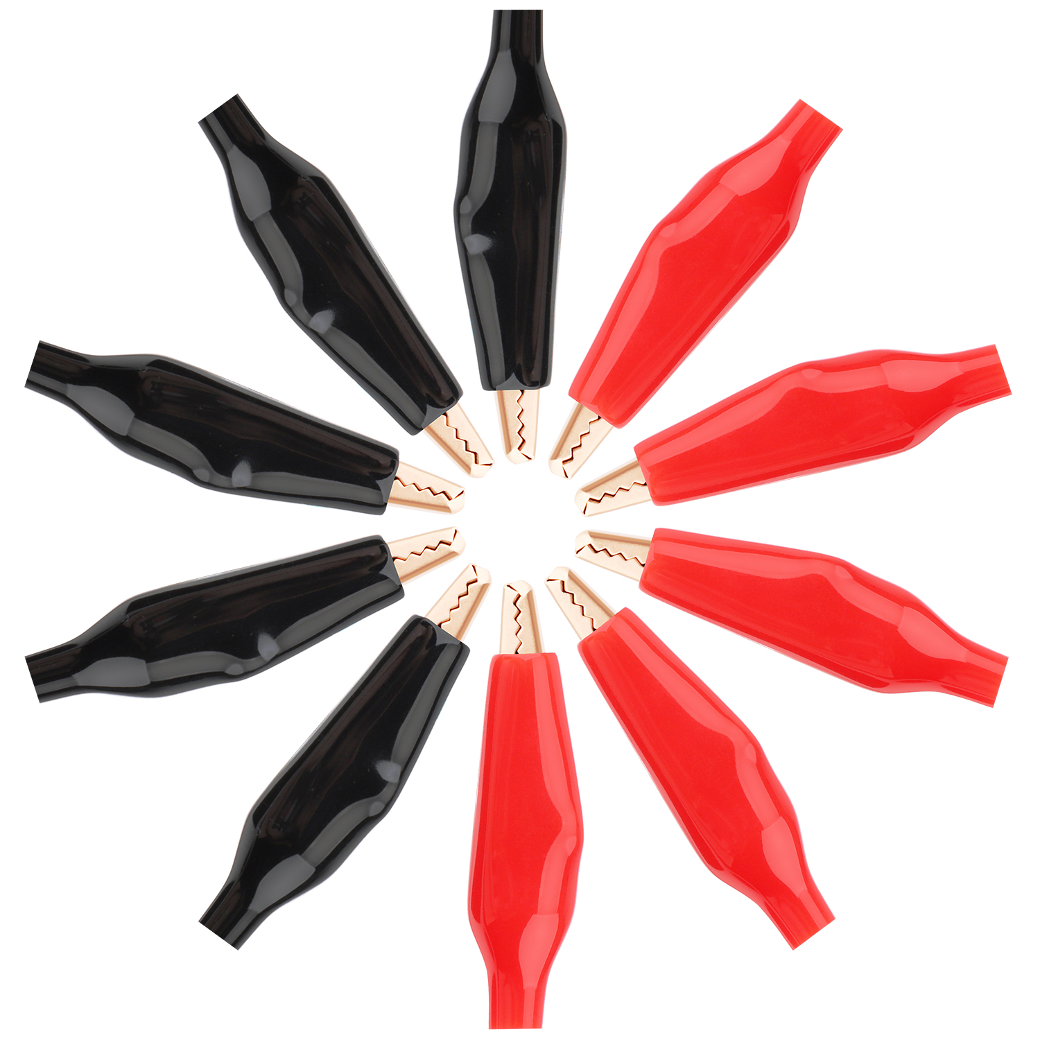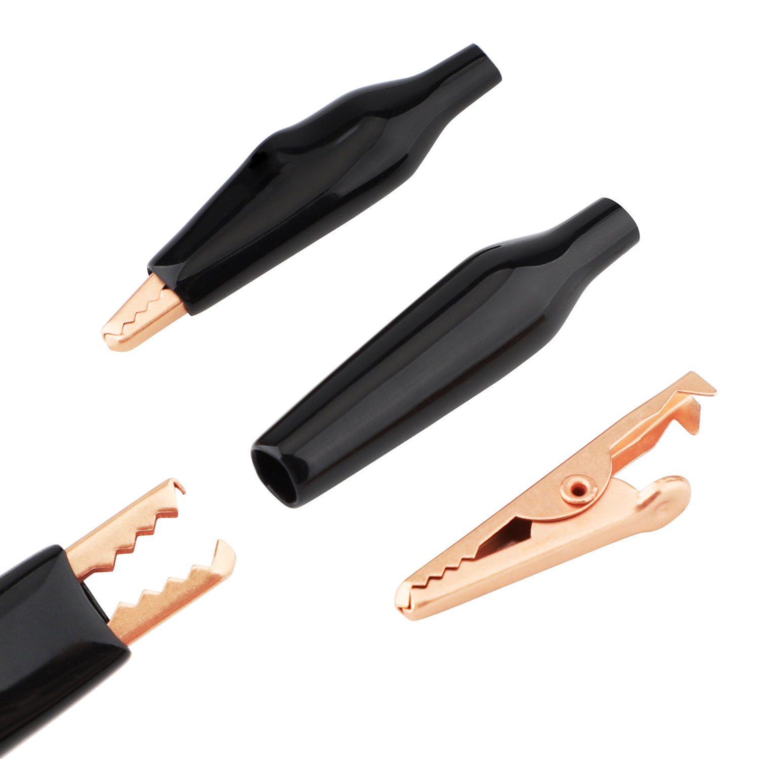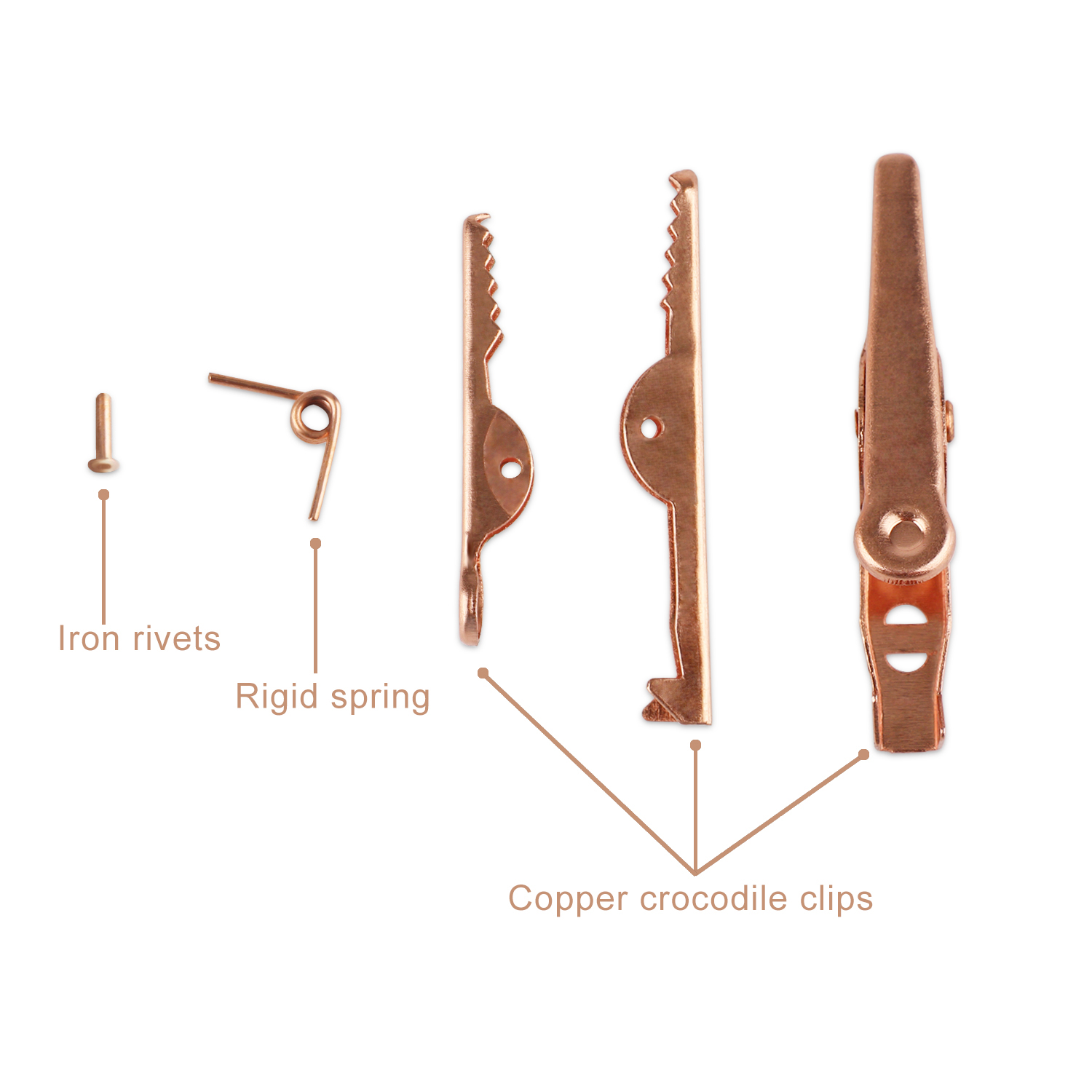 - Good quality clips: with aligned sharp teeth, solid springs and rivet, the cooper alligator clips are featured with good clamping pressure and good bite on jaws.